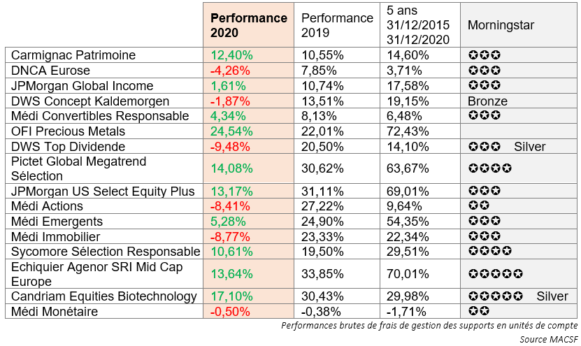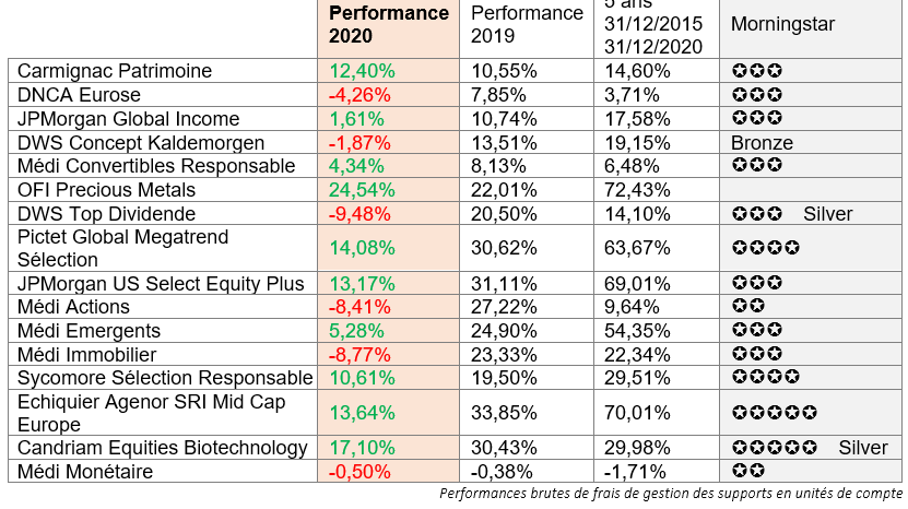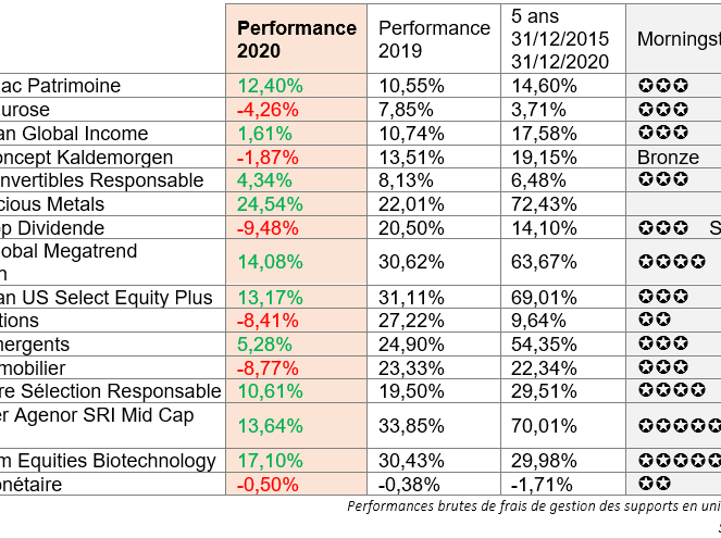 [INFOGRAPHIE] Unités de compte assurance vie - performances 2020