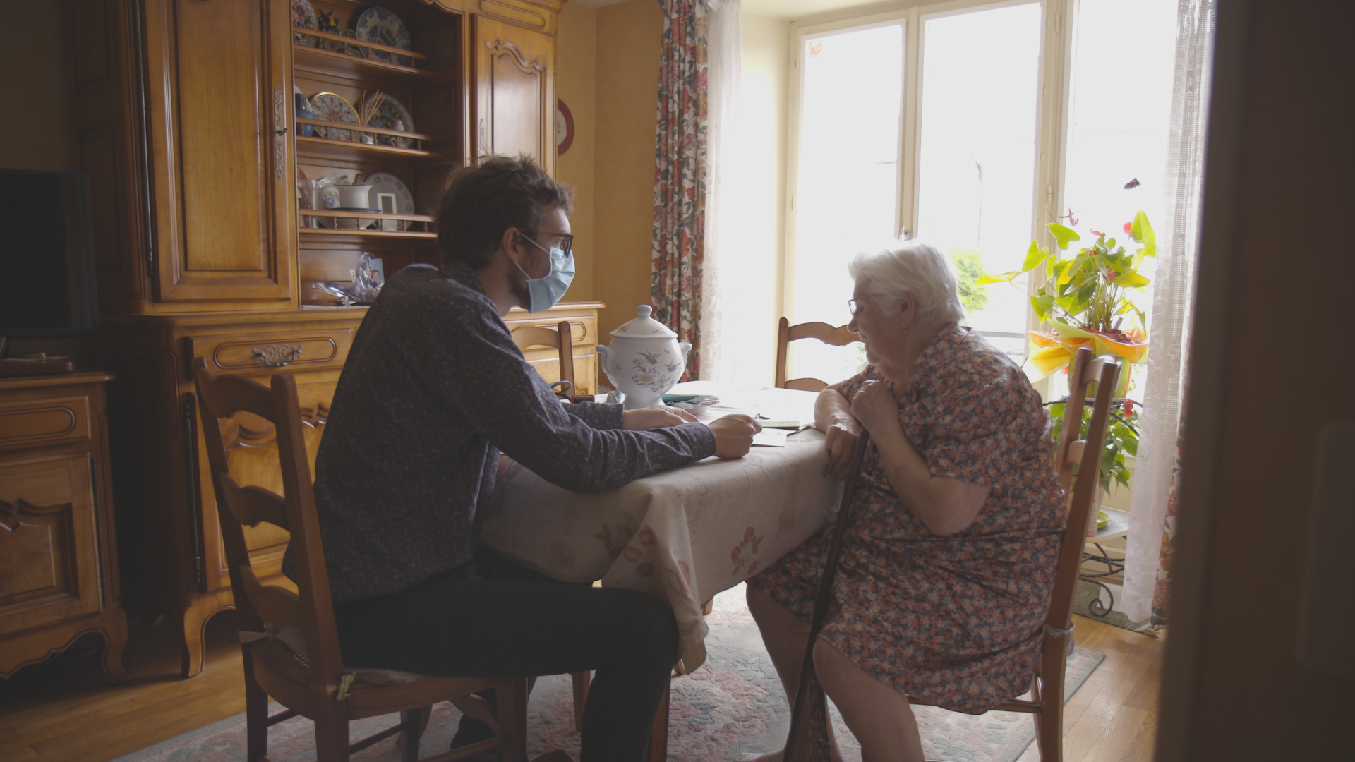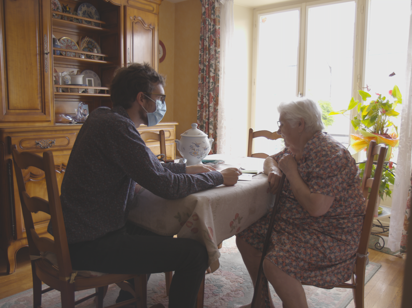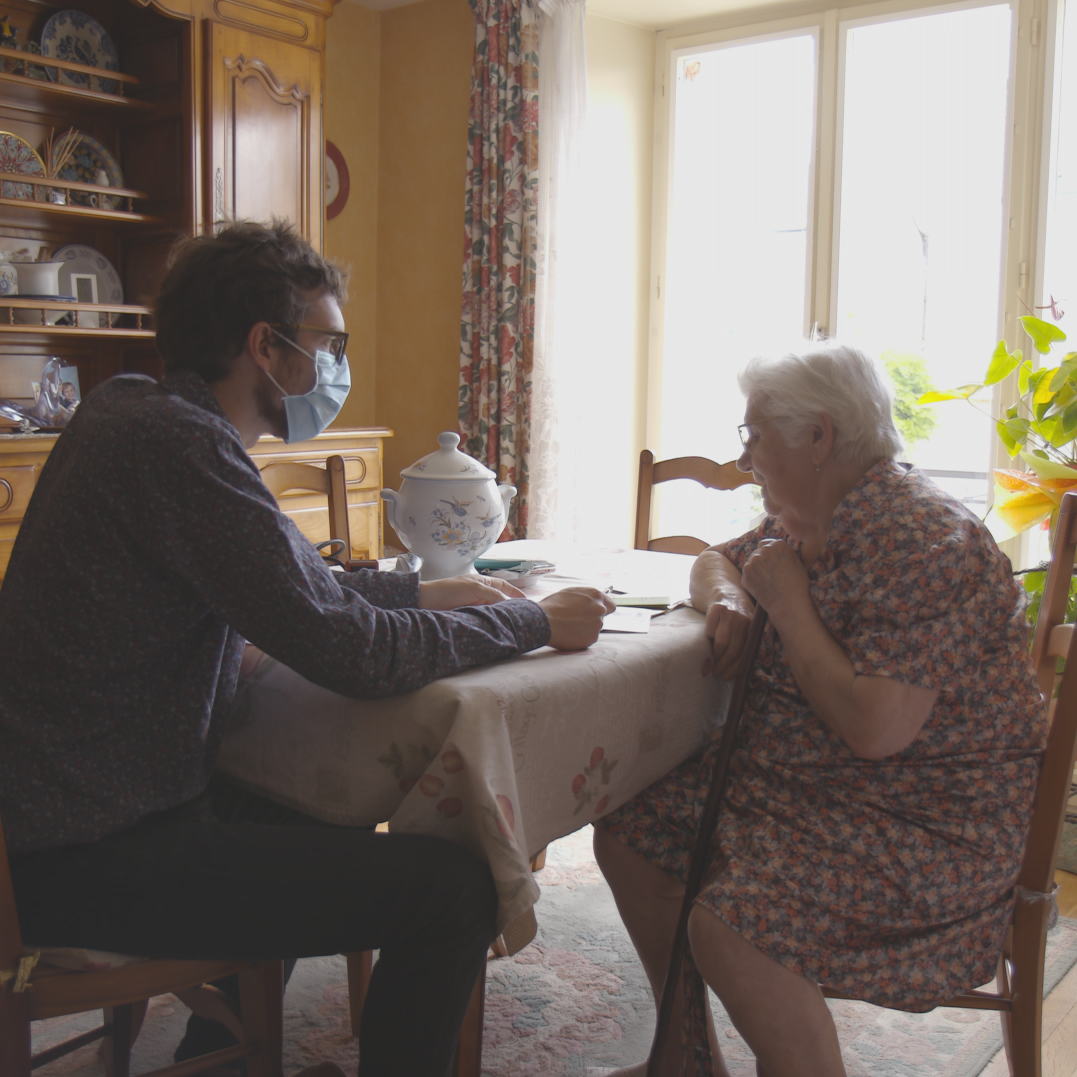 Antoine, jeune médecin généraliste remplaçant, est filmé lors d'une visite à domicile par la réalisatrice Camille Pitron du film documentaire "Aux petits soins".