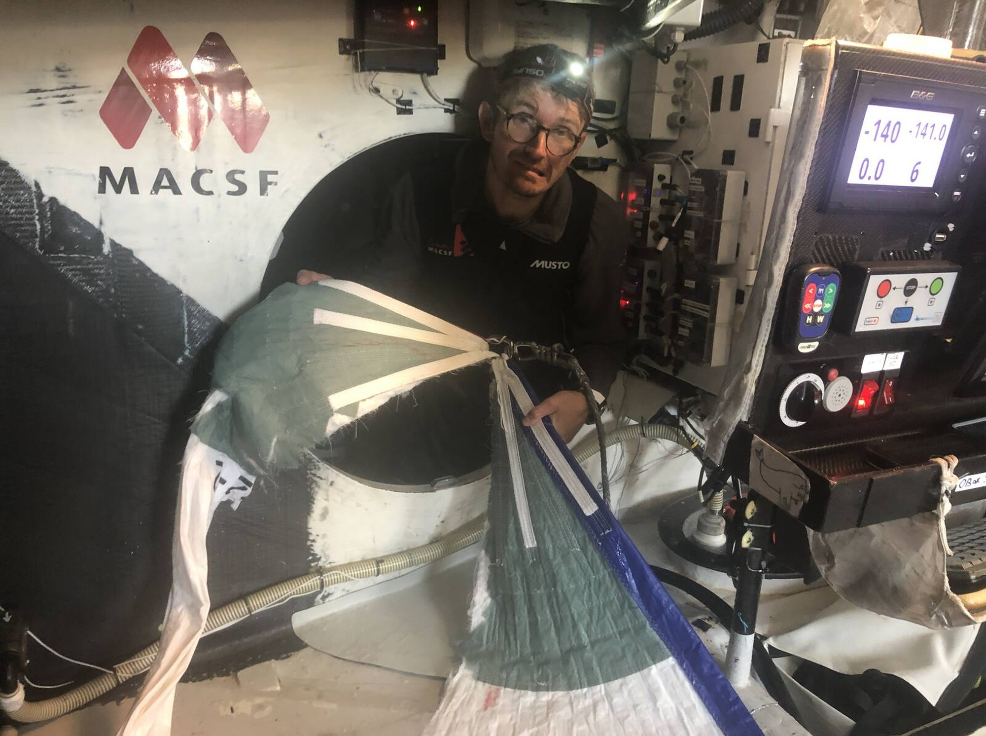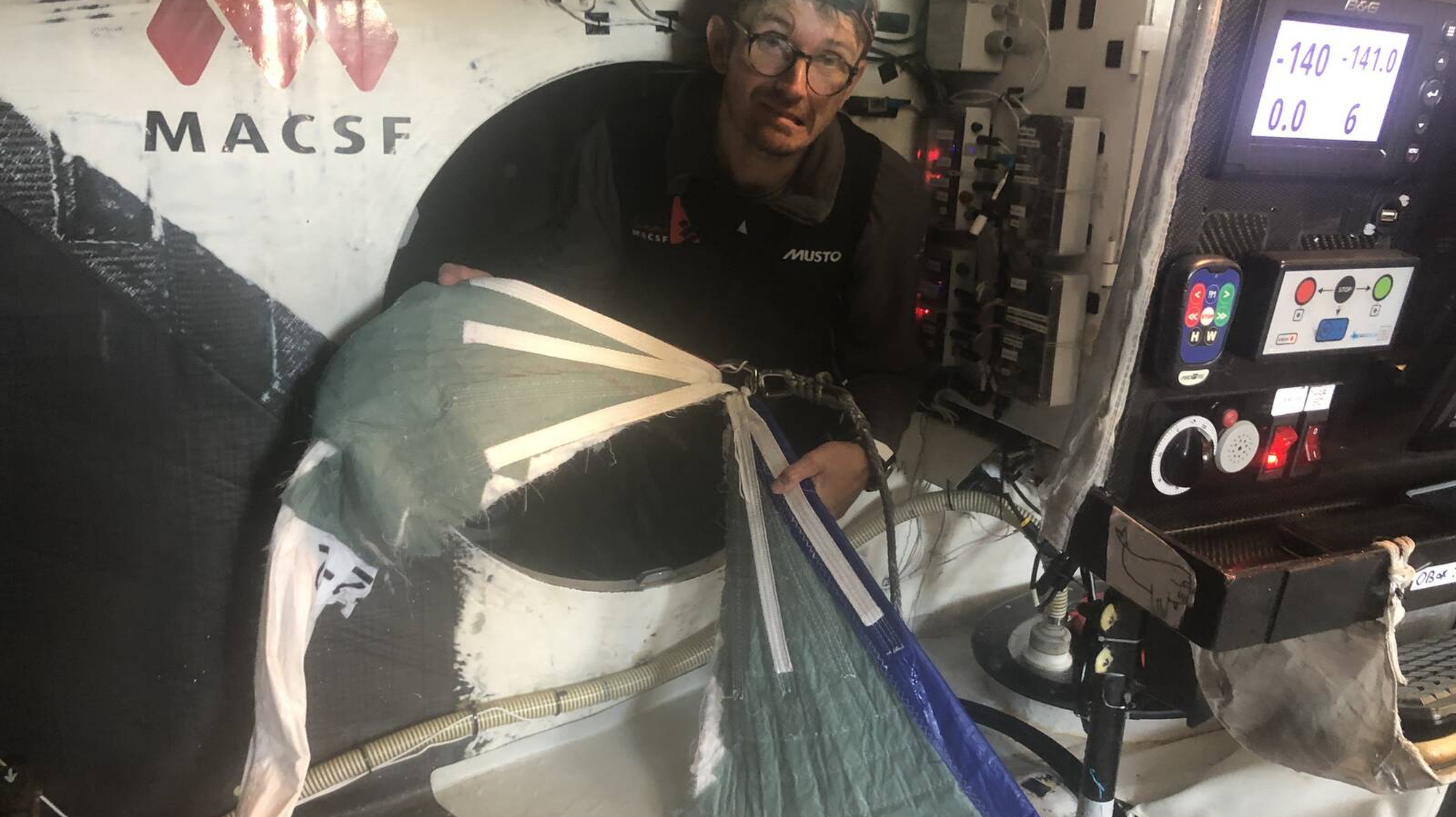 Le spi est tombé à l’eau suite à la rupture d’estrope de la chaussette qui le reliait à la tête de mât et s’est ouvert en deux. Après avoir doublé Gran Canaria hier en fin de journée, l’IMOCA MACSF évoluait ce matin au large de l’Afrique dans 20-22 nœuds de vent, sous spi avec un ris dans la grand-voile au moment des faits.