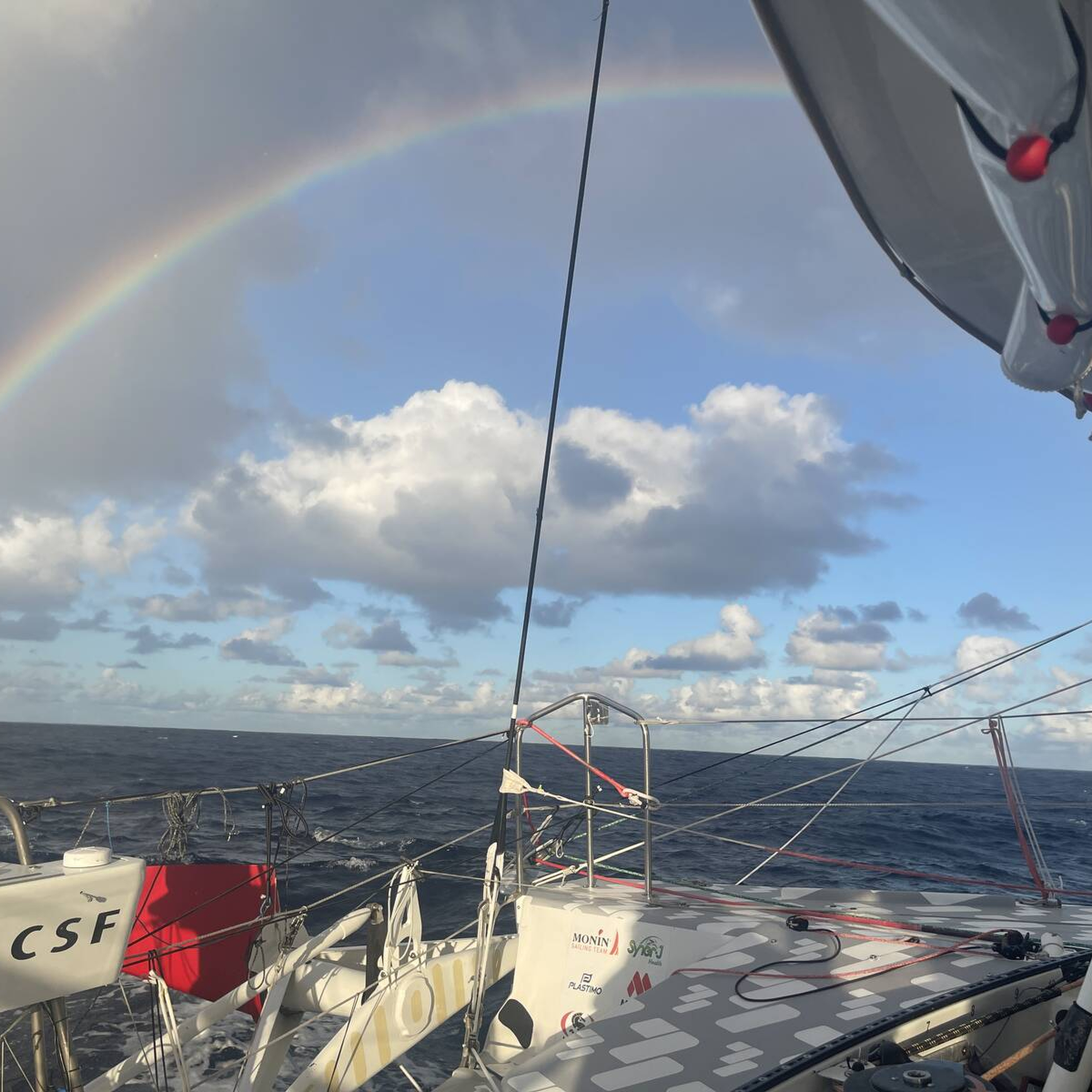 Arc-en-ciel pour Isabelle Joschke et l'IMOCA MACSF lors de la première semaine du Vendée Globe 2024