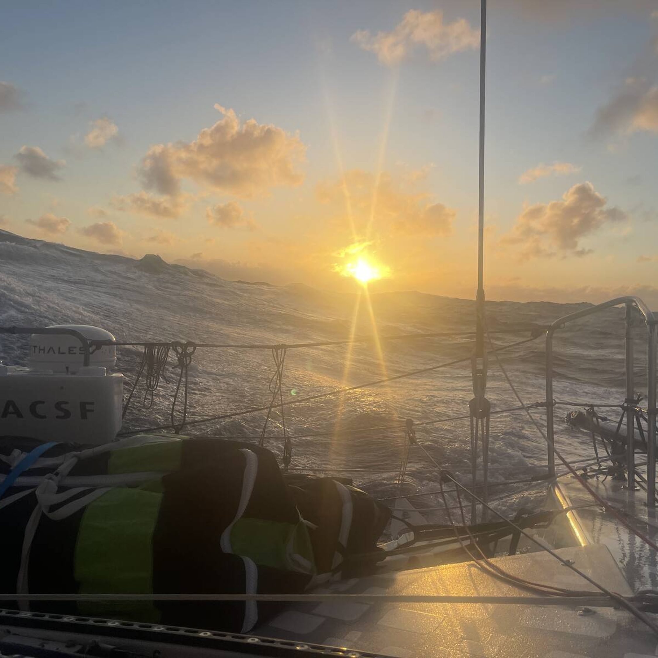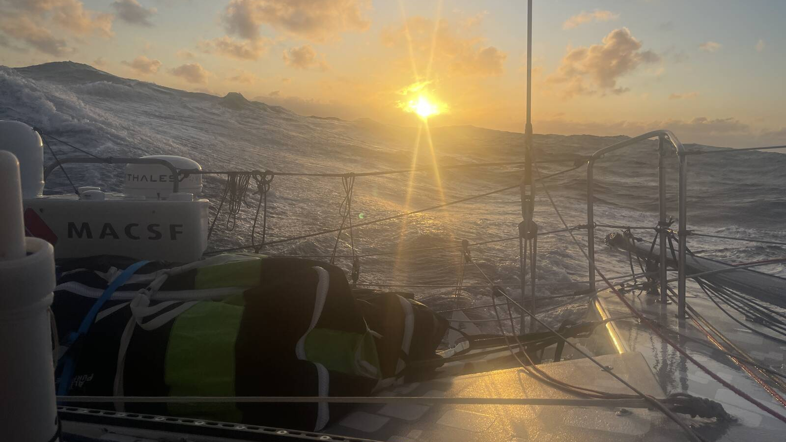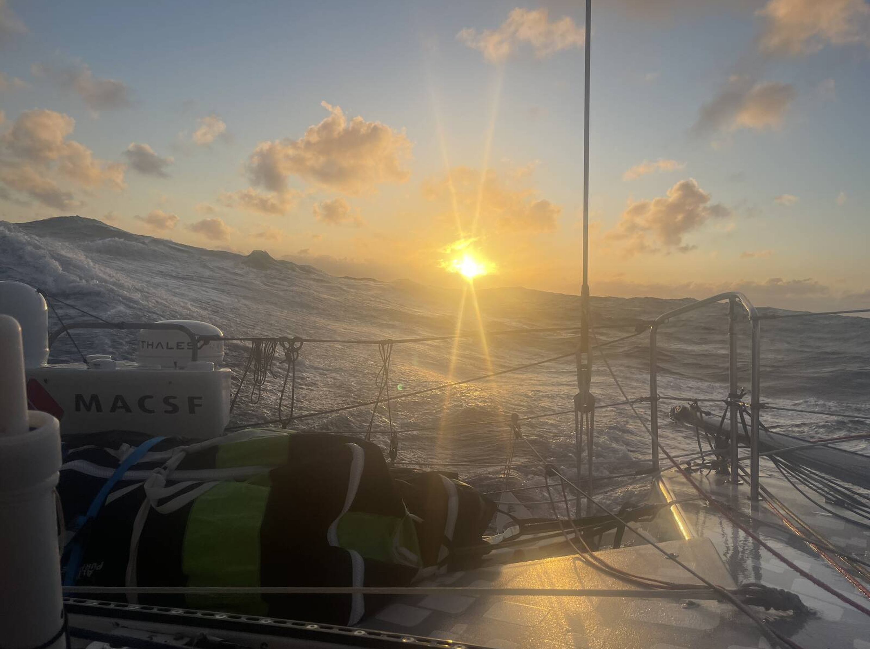 Dernier lever de soleil sur le Pacifique pour Isabelle Joschke à bord de l'IMOCA MACSF. Elle a franchi ce lundi 6 janvier 2025 le cap Horn, dernier des trois grands caps à virer pendant le Vendée Globe.